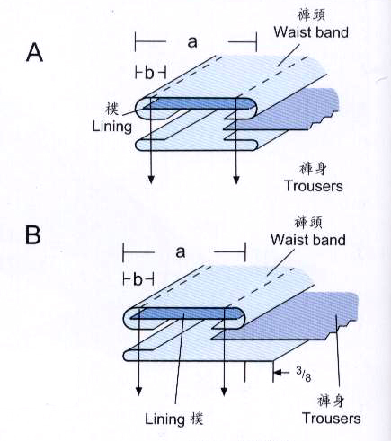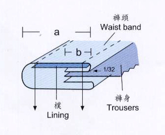 Binding of waist band (with lining).